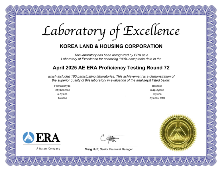 - LH 품질시험인정센터의 실내공기질 측정·분석 능력 국제 공신력 확보
