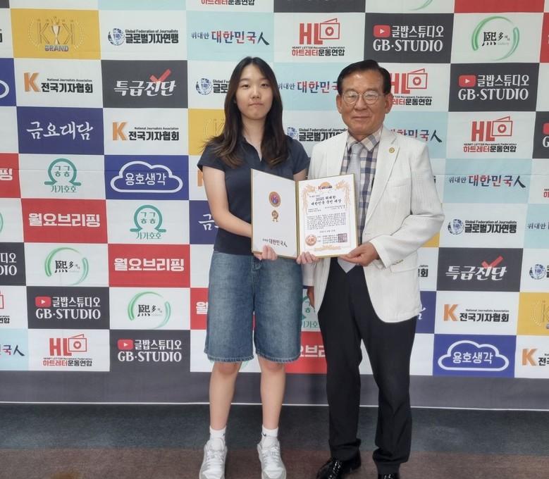 한국기독글로벌스쿨 11학년 박도영, 도연 쌍둥이 자매가 지난 16일 전국기자협회 대강당에서 개최한 2025 위대한 대한민국 국민대상 시상식 사회봉사부문에서 사회봉사최고대상을 수상했다.