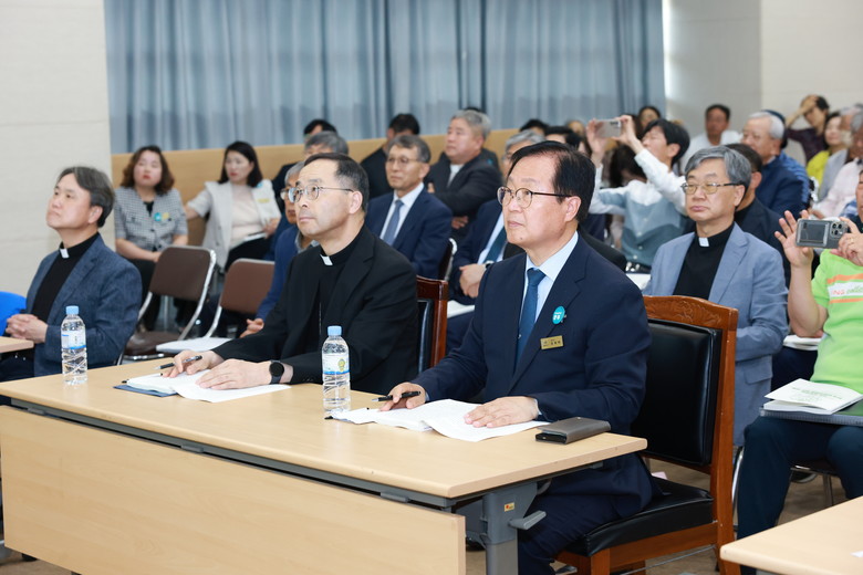 지난달 29일 완주군청 1층 대회의실에서 전주가톨릭순교현양원이 주최한 심포지엄이 유희태 완주군수, 유의식 완주군의회 의장, 권요안 도의원, 군의원, 김선태 주교 등 관계 전문가와 주민 180여 명이 함께한 가운데 열렸다.