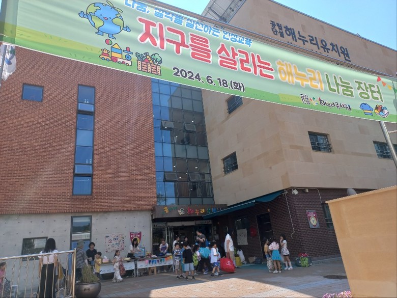 이 날 행사를 준비한 원장 심현미는 “지속가능 발전교육이라는 어려운 용어가 아니더라도 일상생활 속에서 합리적으로 소비하고 나눔의 기쁨을 알아가는 것이 참다운 인성교육이자 생태교육이라고 생각한다. 해누리 어린이들과 교육공동체 모두가 주위를 돌아보고 챙기는 마음을 배우는 기회가 될 것이다”라고 말했다.