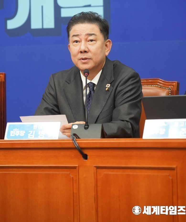 더불어민주당 '김병기' 원대표가 5일 서울 여의도 국회에서 열린 최고위원회의에서 발언하고 있다.