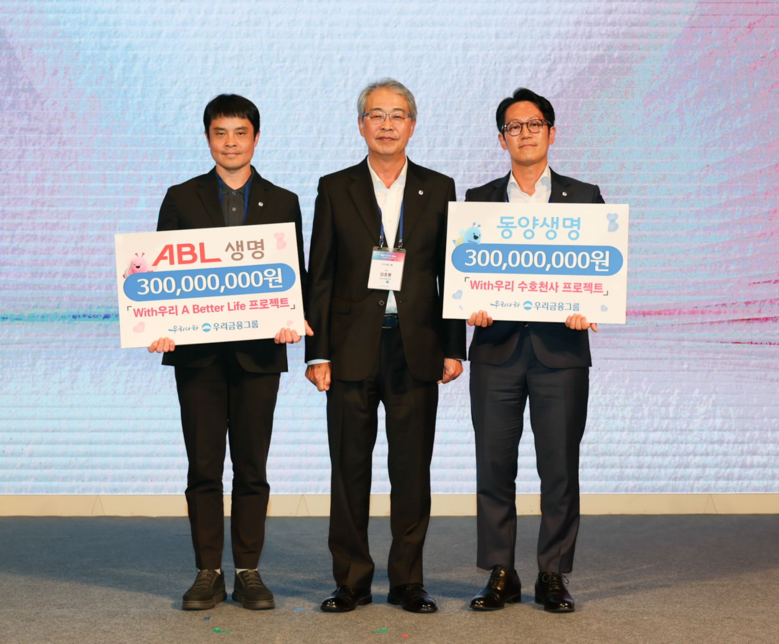환영사에 이어 그룹 특화공익사업 사업비 전달식이 진행됐다. 우리금융그룹의 특화공익사업인‘With우리17프로젝트’확대를 위해 임종룡 회장이 동양·ABL생명 사회공헌 담당자에게 공익사업비를 직접 전달했다.‘With우리17프로젝트’는 우리금융그룹 17개 계열사가 각사의 특성에 맞는 시그니처 공익사업을 진행하는 프로젝트를 의미한다. 동양생명은‘With우리 수호천사 프로젝트’, ABL생명은‘With우리 A Better Life 프로젝트’를 통해 각사 특화 공익사업을 진행할 예정이다.