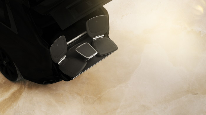 영국 굿우드 공장에서 고안된 뷰잉 스위트는 컬리넌에 탑재되는 최고급 기능 중 하나다. 간단하게 버튼을 누르는 것만으로 현대적인 디자인의 최고급 가죽 시트 한 쌍과 칵테일 테이블이 트렁크 공간에서 우아하게 솟아 올라 차량 뒤쪽을 바라볼 수 있도록 배치된다.