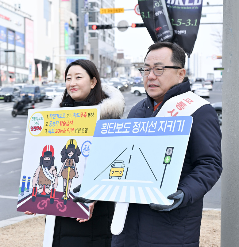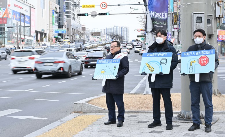 캠페인 현장에서는 교통안전 홍보물과 피켓을 활용해 시민 눈높이에 맞춘 교통안전 수칙 홍보가 이뤄졌다.