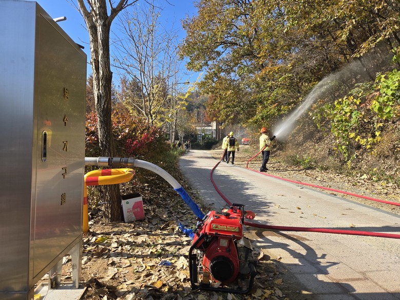 특히, 올해 새로 도입된 인공수리시설과 소방호스가방을 활용해 물 공급이 제한된 산악 지역에서도 신속한 초기 진압 및 현장 대응이 이뤄지도록 하는 데 중점을 뒀다.