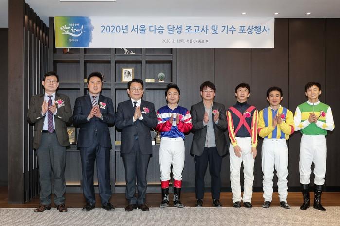 이번 시상식에는 한국마사회 김종국 경마운영본부장, 서울조교사협회 서인석 부협회장, 한국경마기수협회 신형철 협회장 등이 참석했다. 300승을 달성한 배휴준 조교사와 임기원 기수에게는 기념패와 포상금 200만원, 700승을 달성한 김용근 기수와 함완식 기수에는 기념패와 포상금 500만원이 전달됐다.
