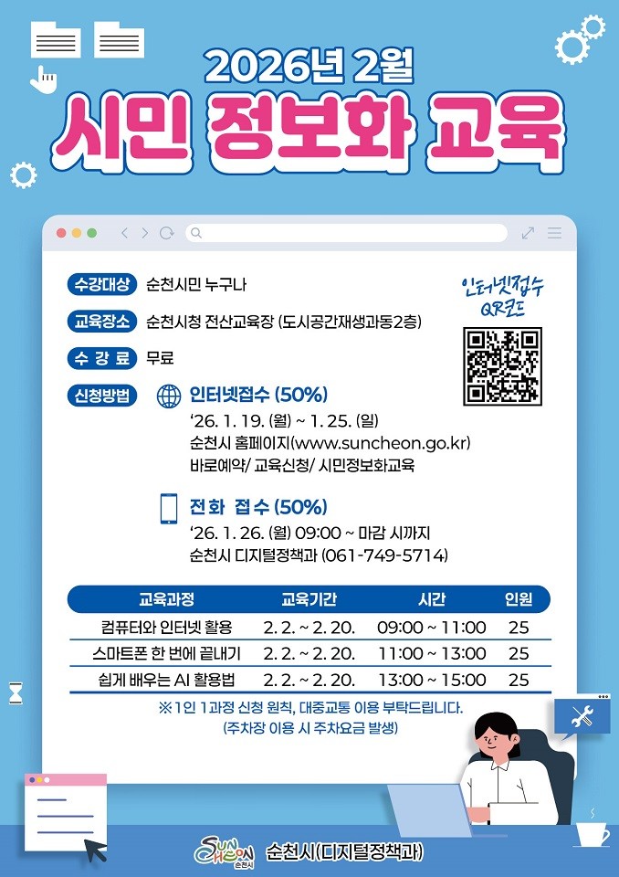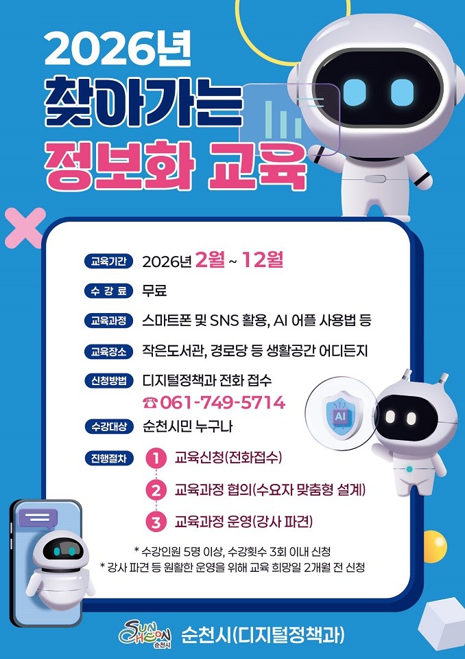 시 관계자는 “AI 기술이 빠르게 발전하는 시대에 모든 시민이 부담 없이 새로운 디지털 기술을 익힐 수 있도록 교육 기회를 넓혀가고 있다”며 “2026년에는 보다 많은 시민에게 유익한 교육이 될 수 있도록 프로그램을 개선해 나가겠다”고 말했다.
