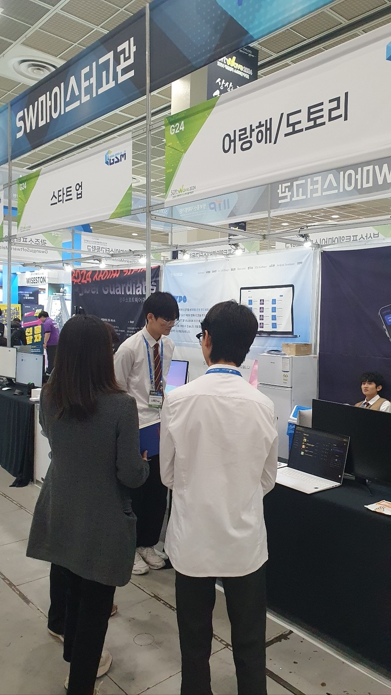 [광주 세계타임즈=손권일 기자] 광주소프트웨어마이스터고등학교(이하 광주소마고) 학생들이 지난 4~6일 서울 삼성동 코엑스에서 열린 ‘소프트웨이브 2024’에서 자체 개발한 ‘체험형 보안 부스’를 운영했다.