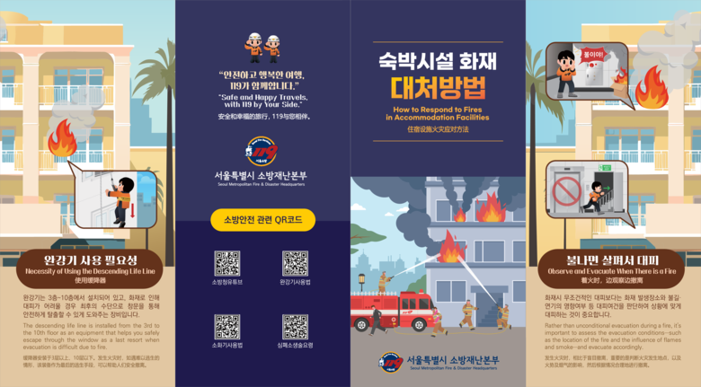 이와 함께 관계인을 대상으로 △화재 예방 및 화재 발생 시 초기소화 방법 △비상구·피난통로 등 피난대피로 확보 및 피난 유도 요령 △다국어 숙박시설 화재 대응 안내 리플릿 배부 등 맞춤형 소방안전 컨설팅도 실시한다.