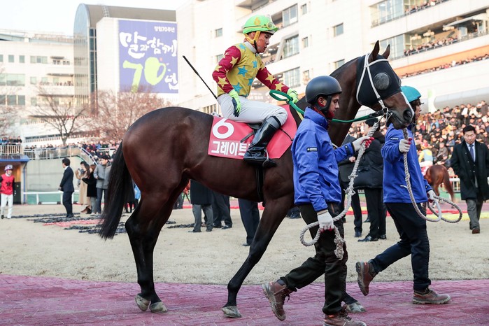 ‘그레이트킹’은 이날 제6경주로 치러진 2,000m 더트 주로 경주에서 해당 경주 최고 레이팅마 ‘조리온(6세,거,R103)’, 결승 진출을 목표로 하는 미국 기대주 ‘파시모니(4세,수,R100)’ 등 총 15두의 쟁쟁한 상대들과 경쟁을 펼친 끝에 3위라는 좋은 성적을 거두었다.