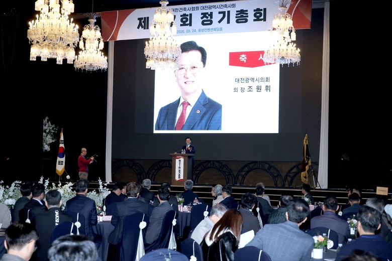 [대전 세계타임즈=이채봉 기자] 대전시의회 조원휘 의장은 24일 대전광역시 건축사회 제37회 정기총회에 참석해 주요 사업 성과를 공유하고 지역 건축문화 발전 방향을 논의했다.