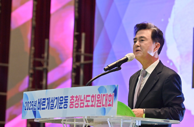 김 지사는 5일 당진실내체육관에서 열린 ‘2025 바르게살기운동 충청도 회원대회’에서 “회원들의 헌신과 실천은 더 따뜻하고 안전한 충남을 만드는 큰 힘이 되고 있다”며 “올해도 사회 곳곳에서 도정을 적극 뒷받침해주신 여러분들에게 감사드린다”고 말했다.