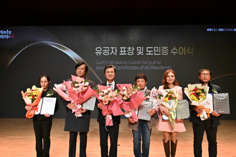 김 지사, 도내 외국인 근로자와 유학생, 기업과 대학 대표 등 700여 명이 참석한 가운데 연 이날 행사는 비전 영상 상영, 김 지사 비전 선포, 퍼포먼스, 유공자 표창 및 도민증 수여 등의 순으로 진행했다.