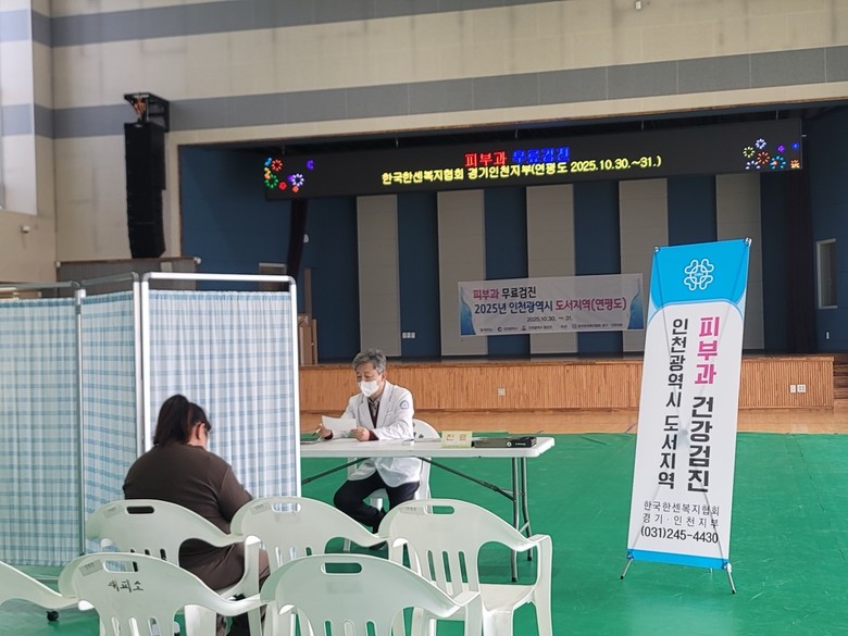 [옹진군 세계타임즈=심하린 기자] 옹진군(군수 문경복)은 지난 30일부터 31일까지 2틀간, 한국한센복지협회 경기·인천지부와 함께 연평면 국민체육센터에서 도서지역 주민을 위한 무료 피부과 및 건강검진을 실시했다고 밝혔다.