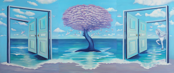 작가는 치열한 현실 속에 살고 있는 대부분의 사람들이 자신의 삶, 그 이상의 유토피아를 꿈꾸는 것에 주목했다. 그 유토피아는 모두 다른 빛깔과 형상을 띠고 있겠지만 작가의 무의식 속에 잠재되어 있는 유년시절의 기억에서 그것을 찾아 형상화하고 있다. 작가의 작업에 등장하는 집과 문은 그 추억으로 들어가는 입구가 된다. 그리고 그 안의 흔들 목마, 놀이공원의 회전목마, 말 인형은 수천 년 전부터 인간이 하늘과 땅을 오가는 존재라 믿었던 그 천마 혹은 신마의 존재를 떠오르게 한다. 즉 작가의 영혼을 오롯이 유토피아의 공간으로 실어다 주는 매개가 된다.