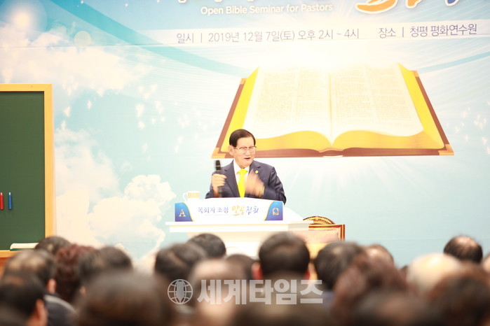 [가평=세계타임즈 이채봉 기자]경기도 가평군 청평 평화궁전에서 성경의 예언이 실상으로 선포하는데 주력해온 신천지예수교 증거장막성전 신천지예수교회 이만희 총회장이 7일 전국 목회자들을 상대로 말씀대집회를 개최하면서 올 한해 실상복음 전파의 대단원을 마무리했다.