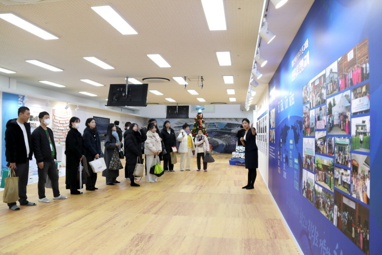 (지난 12월 7~22일 신천지 예수교회 바돌로매지파 본부 영등포교회에서 '신천지 10만 수료 사진전'이 열린 가운데, 전시 도슨트가 진행되고 있다)