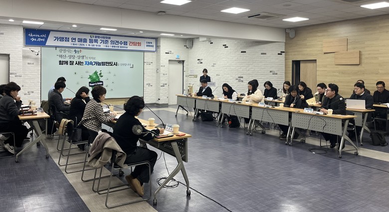 시는 16일 시청 중회의실에서 광명사랑화폐 가맹점 등록 기준 가운데 ‘연매출 기준’ 조정에 관한 의견 수렴 간담회를 개최했다.