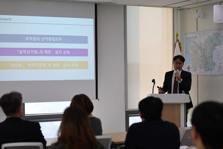 이번 교육은 충청광역연합 출범 이후 처음 실시된 선거법 관련 교육으로, 선거법 논란 없는 원활한 의정활동 지원과 홍보 업무 추진을 위해 마련됐다.