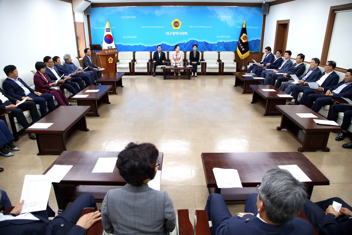[대구=세계타임즈 한성국 기자] 대구광역시의회(배지숙 의장)는 7월 16일 제268회 임시회 개회 직후 2층 간담회장에서 전체 의원 간담회의를 열고 대구시 신청사건립이 공정하고 투명하게 진행될 수 있도록 시의회 의원들은 끝까지 중립적인 입장을 견지하겠다고 밝혔다.