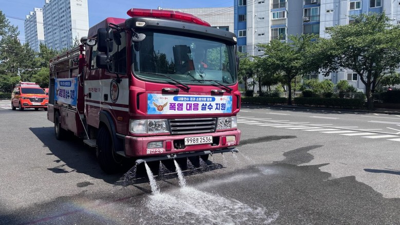특히, 지난 3일부터 내용연수가 지난 소방차에 살수장치를 장착해 남구 케이비에스(KBS) 앞 번영로에 시범 운영 중에 있다. 시는 오는 2027년까지 내용연수가 경과한 소방살수차 총 6대를 추가 확보해 폭염 대응에 적극 활용할 계획이다.