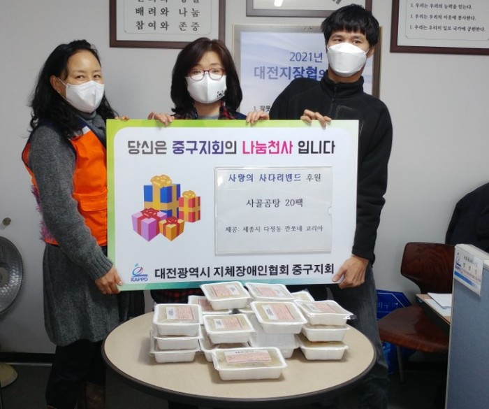 대전시지체장애인협회 중구지회 김채린 회장은 “오늘 사랑의 사다리 밴드에서 사골곰탕을 지원해 주어서 큰 힘과 위안이 된다,”면서 감사함을 전했다.