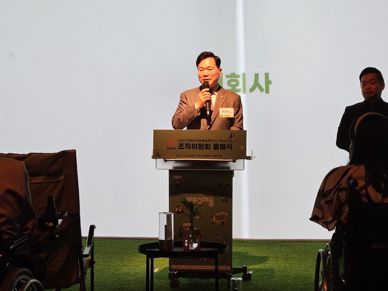 [세계타임즈 = 이채봉 기자] 김승수 국회의원 ( 국민의힘 · 대구 북구을 ) 이 23 일 대학로 이음센터 아트홀에서 열린 ‘2023 장애인문화예술축제 A+ Festival’ 조직위원회 출범식에서 3 년 연속으로 대회장을 맡았다 .