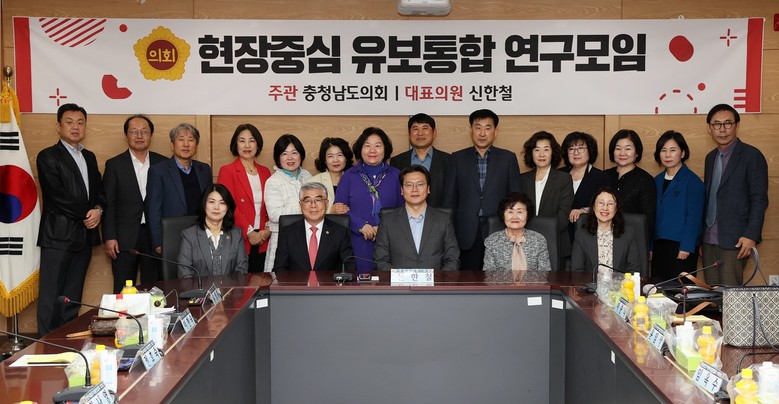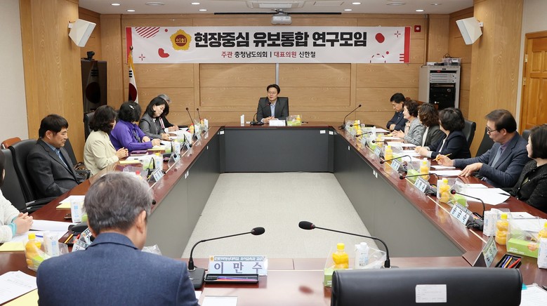 이날 회의에는 연구모임의 대표인 신한철 의원(천안2‧국민의힘)을 비롯해 유성재 의원(천안5‧국민의힘), 이현숙 의원(비례‧국민의힘) 등 연구모임 회원과 도교육청 유보통합추진팀 관계자 등 20여 명이 참석했다.