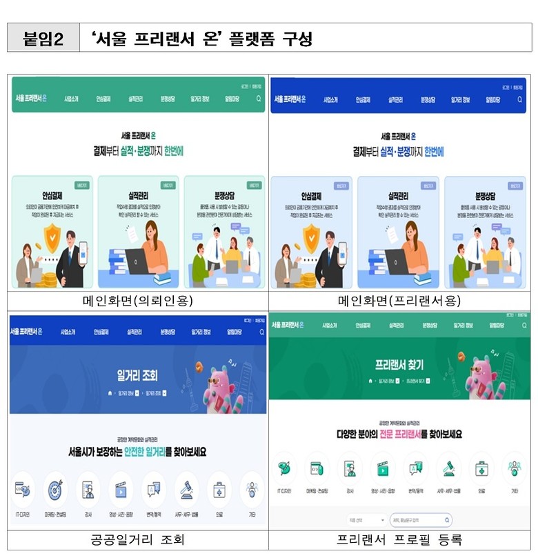 이용 편의성도 대폭 개선됐다. ‘서울 프리랜서 온’에는 서울시 사업 최초로 정부통합로그인(Any-ID) 서비스를 도입해, 별도의 프로그램 설치 없이 다양한 인증수단을 활용해 PC와 모바일에서 간편하게 가입·이용할 수 있다.
