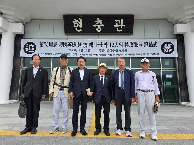 [서울 세계타임즈=이장성 기자] 서울특별시의회 도시안전건설위원회 부위원장으로 의정활동하고 있는 김용호 시의원(국민의힘, 용산1)은 지난 9월 16일 국립서울현충원 현충관에서 열린 ‘제75주기 호국영웅 연제근 상사와 12인의 특공대원 추모식’에 참석해 영령을 기리고 유족과 함께 뜻을 나눴다.