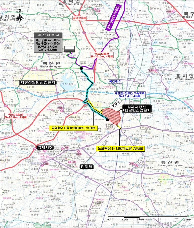 지평선 일반산업단지에만 공급 중인 전용 공업용수를 지평선 제2 일반산업단지까지 확대하기 위해 시는 전북특별자치도에 사업의 필요성을 지속적으로 건의한 결과, 총 57억원을 전액 도비로 확보했다. 시는 2026년부터 실시설계를 추진해 백산 배수지부터 5.1km 구간에 공업용수도 신설관로를 구축하는 사업을 본격적으로 진행할 계획이다.