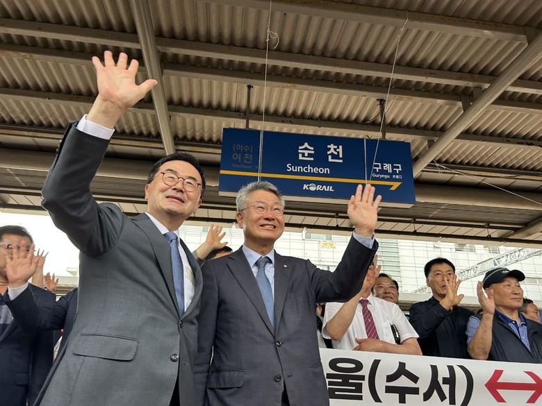 [세계타임즈 = 심귀영 기자] 소병철 의원(더불어민주당, 국회 법사위 간사) 1일 여수EXPO역에서 06:46분에 출발한 첫 전라선 SRT 열차에 탑승하여 순천역까지 이동한 후 순천역에서 전라선 SRT 순천 첫 운행 환영 행사를 개최했다.