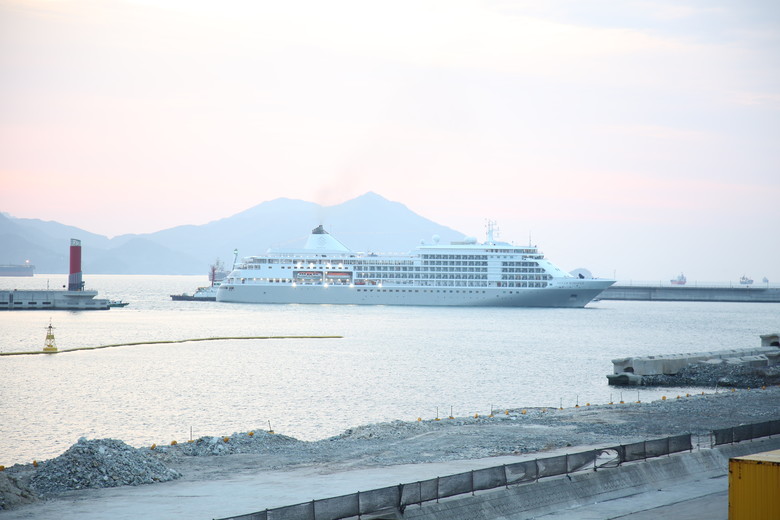 4일 항만공사에 따르면 여행객 300여 명과 승무원 300여 명이 탑승한 국제 크루즈선 '실버 위스퍼(SilverWhisper)호’가 이날 여수항 엑스포여객선터미널에 입항했다.(사진 YGPA 제공)