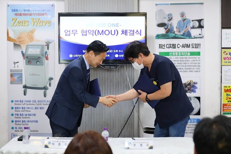 이날 협약식은 정읍교회가 삼성연합정형외과를 의료지정병원으로