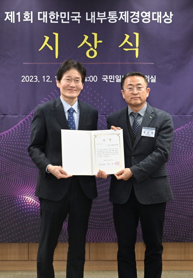 국민일보와 한국투명경영학회 등이 주최한 이 시상식은 기업의 자발적인 내부통제 시스템 구축과 청렴 정신을 확산하는 데 기여한 기업을 선정하기 위해 올해 신설됐다. 내부통제경영(IMS) 인증을 받은 기관 등을 대상으로 심사위원회에서 공모 부문별 엄격히 심사, 수상기관을 선정했다.