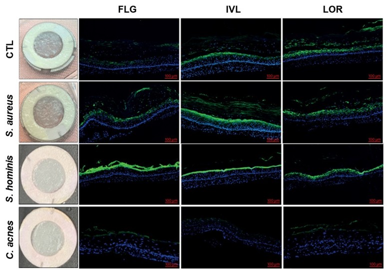 이번 연구는 피부 상재 미생물인 황색포도상구균(Staphylococcus aureus), 스타필로코쿠스 호미니스(Staphylococcus hominis), 큐티박테리움 아크네(Cutibacterium acnes)가 피부 장벽 단백질 발현과 지질 합성에 미치는 차별적 영향을 규명한 연구로, 피부 장벽 항상성 유지 기작을 과학적으로 분석한 것이 특징이다.