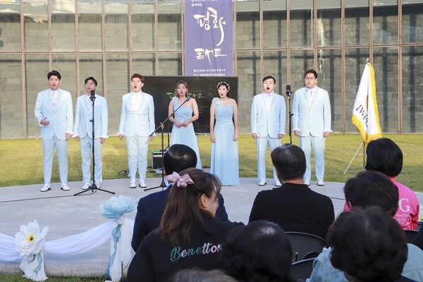 | ▲지난 5일 평화문화진지에서 미라클 보이스가 공연을 선보이고 있다 [사진제공 = IWPG] |