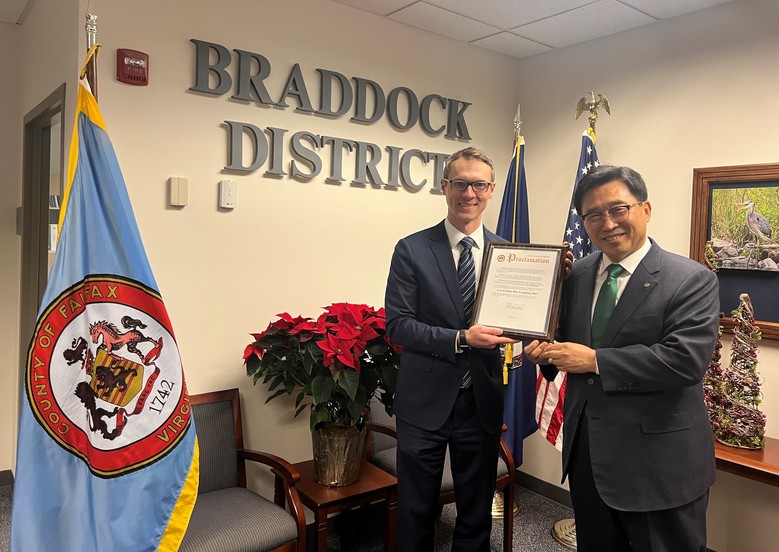 [세계타임즈 = 이현진 기자] 미국 버지니아주 페어팩스 카운티(의장 제프리 맥케이)가 2023년 12월 7일을 ‘저탄소 식생활의 날(Low Carbon Diet Campaign Day)’로 선포하고, K-푸드 세일즈를 위해 미국을 방문 중인 한국농수산식품유통공사 김춘진 사장에게 저탄소 식생활 실천 운동에 적극 동참하겠다는 내용의 선포문을 직접 전달했다.