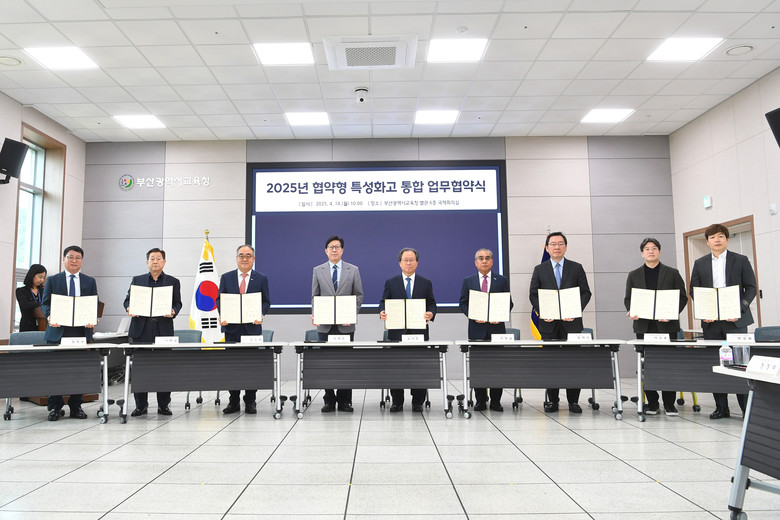 ◈ 이번 협약 체결로, 참여 기관들은 ▲지역인재로서 학생의 성장 ▲지속 가능한 민관협력(거버넌스) 구축 ▲학교별 협약형 특성화고등학교 육성계획 수립 등에 협력 [세계타임즈=부산 이용우 기자] 부산시(시장 박형준)와 부산시교육청(교육감 김석준)은 오늘(14일) 오전 10시 시교육청 국제회의실에서 기업, 대학 등과 함께 협약형 특성화고등학교 육성을 위한 업무협약을 체결한다고 밝혔다.