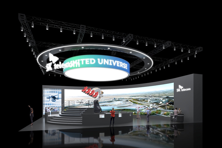 SKT 전시관을 찾은 관람객들은 UAM 서비스에 대한 소개와 SKT의 사업 비전에 대한 설명을 들은 뒤 대형 로봇팔 시뮬레이터 위에 올라 마치 UAM 항공기에 탑승해 비행하는 듯한 체험을 할 수 있다.