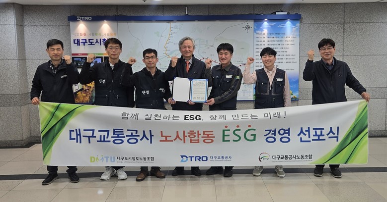 김기혁 대구교통공사 사장은 “이번 선언은 노사가 함께 실천하는 지속가능 경영의 출발점”이라며 “앞으로 노사 간 긴밀한 협력을 바탕으로 ESG 가치를 조직 전반에 확산하고 사회적 책임을 선도하는 공기업으로 도약하겠다”고 말했다.
