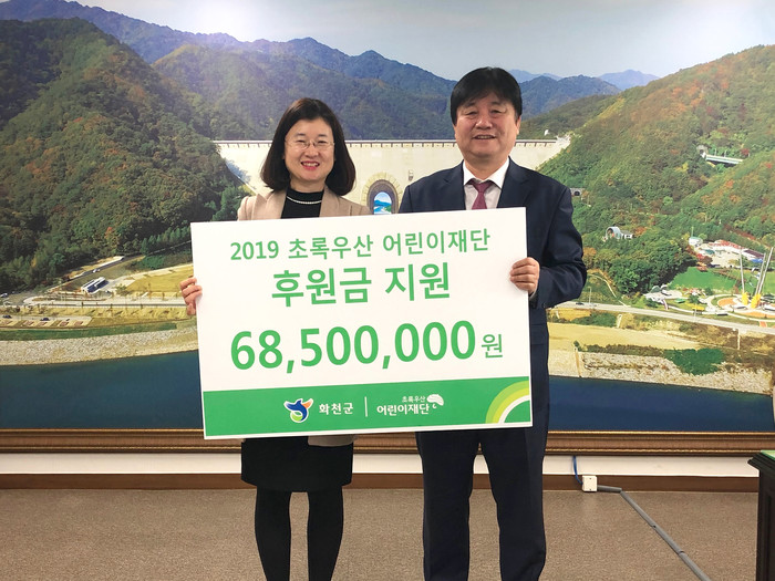 이번에 전달한 후원금은 관내 저소득층 가구 대상 정기결연후원금과 학업이나 기계체조 등 인재아동 양성을 위한 장학금으로 어린이재단은 지난해에도 화천에 거주하는 아동 59명에게 약 8,100여만 원을 지원한 바 있다.