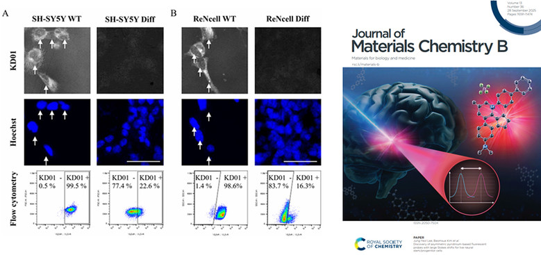특히, KD01은 미분화 상태의 인간 신경줄기세포를 선택적으로 염색할 수 있으며, 기존 형광 프로브의 단점인 짧은 파장 차이를 극복한 특성(Large Stokes shift)을 확보해 고해상도 바이오 이미징에 유리하다.