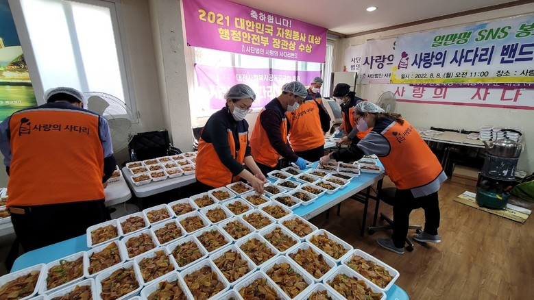 [대전 세계타임즈=이채봉 기자] 7년째 꾸준히 대전시 소외계층을 위해서 다양한 봉사를 펼치고 있는 대전시 봉사단체 사랑의 사다리 밴드(리더 이정제)는 2일 대덕구 소외계층 85가정에 사랑의 밑반찬 3종류를 전달하면서 우리 사회의 따뜻한 사랑을 실천하였다.