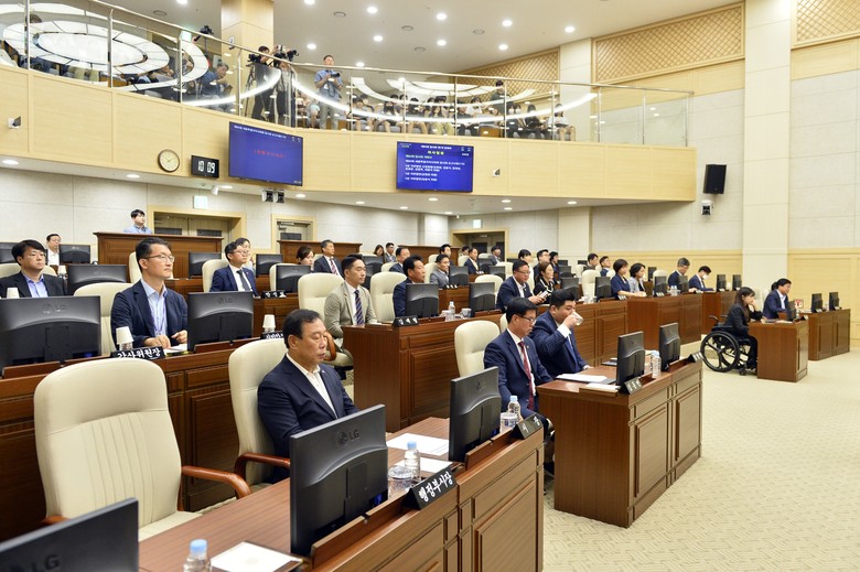 28일 1차 본회의에서는 개회식을 시작으로 김영현, 김충식, 임채성, 김광운, 김현옥, 최원석 의원이 5분자유발언을 했다. 이어 ‘세종시의회 공공시설물 인수점검 특별위원회 위원 보임의 건’ 등 6개 안건이 처리됐다.