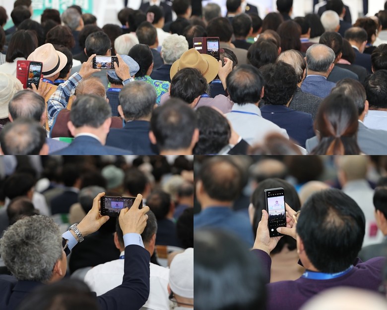 ‘2024 신천지 계시 성취 실상 증거 말씀대성회’가 5일 서울 영등포에서 열린 가운데 참석한 목회자들이 촬영하는 모습.