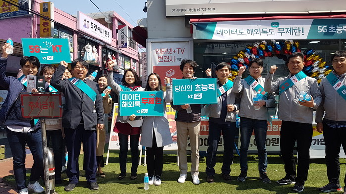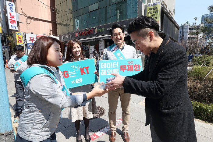 한편, KT 및 그룹사 임직원 8천명은 KT 5G를 고객들에게 직접 알리기 위해 전국에서 4월 4일부터 5일까지 이틀간 ‘5G 가두 캠페인’을 진행한다. 유동 인구가 많은 지하철 입구와 그 주변에서 캠페인을 위해 제작한 ‘초능력 드링크’, ‘ KT 5G 소개서’를 시민들에게 나눠주며 KT 5G 서비스의 우수성을 알렸다. KT는 적극적인 현장 마케팅을 통해 고객과 직접 만날 수 있는 기회를 발굴하여, KT의 5G를 좀 더 친근하게 알릴 계획이다.