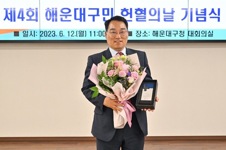 [세계타임즈 백진욱 기자] 부산시 해운대구의회 이상곤 의원이 이번 세계 헌혈자의 날을 기념하여 헌혈 100회를 달성, 명예장 헌혈 유공패를 받았다.
