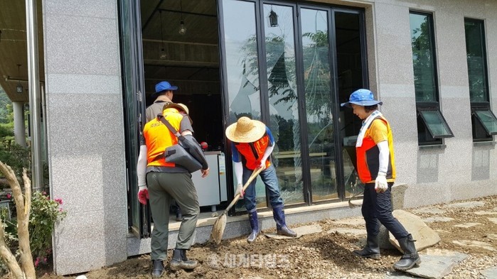[대전=세계타임즈 이장성 기자] 대전의용소방대(연합회장 김선태)는 25일 충북 청주시 미원면 옥화리에서 대원 50여명이 참여한 가운데 충북의용소방대연합회와 함께 중장비 등을 이용해 수해복구 활동을 펼쳤다.