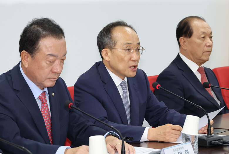 국민의힘 추경호 원내대표가 18일 오전 서울 여의도 당사에서 열린 비상대책위원회의에서 발언하고 있다[사진=연합뉴스]